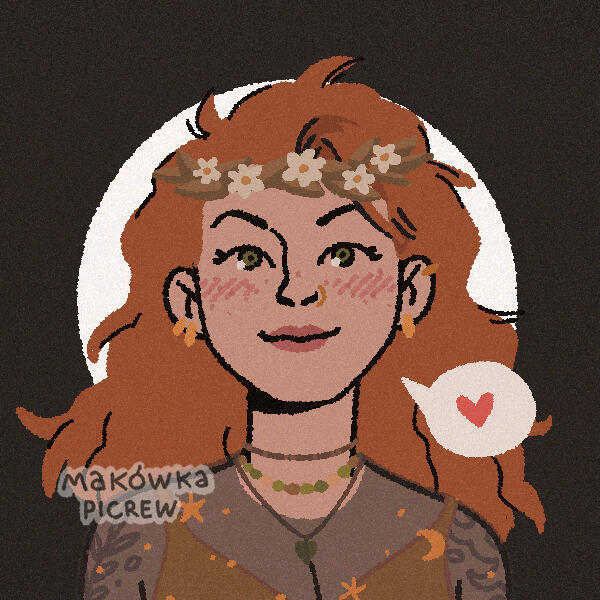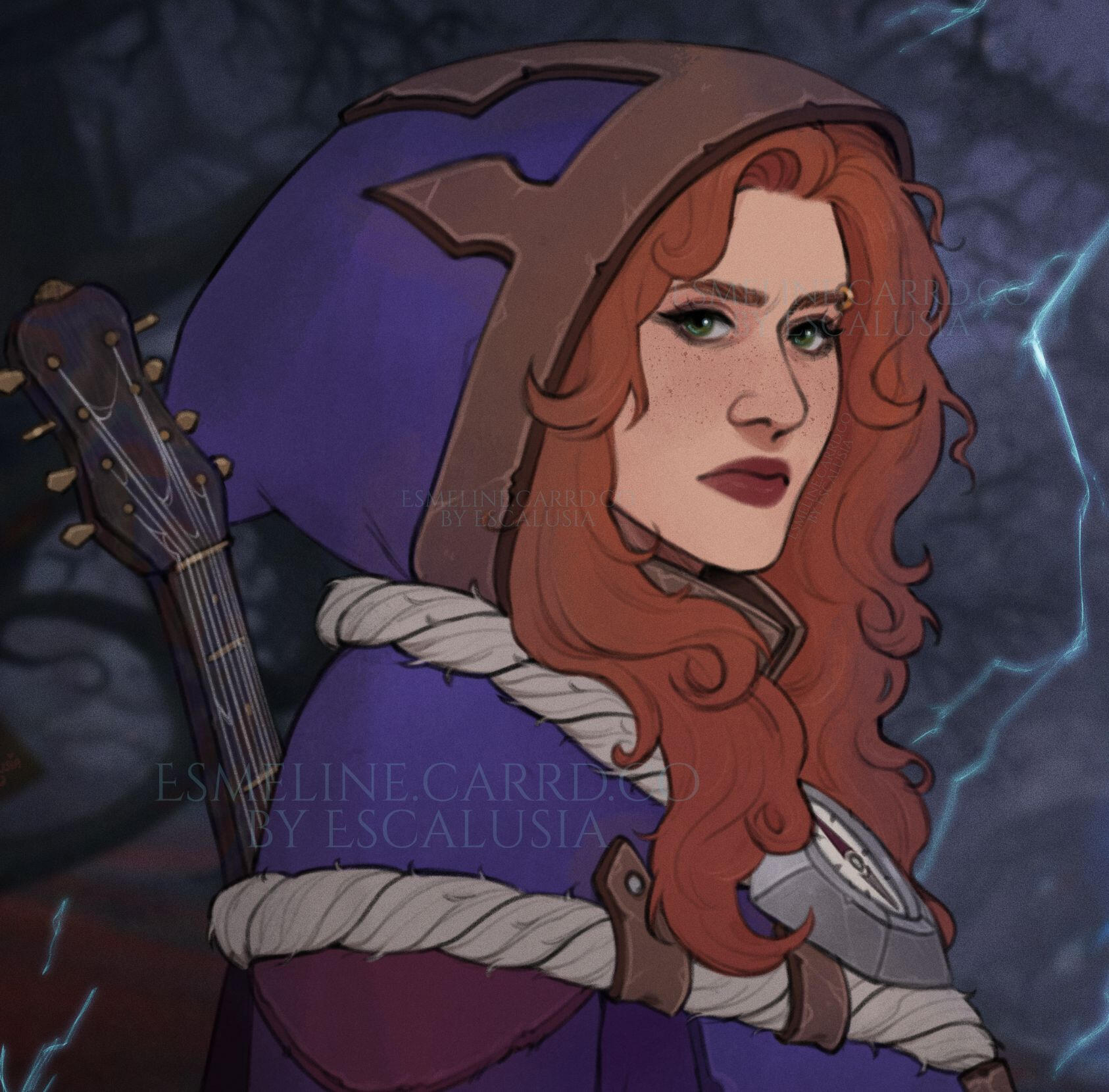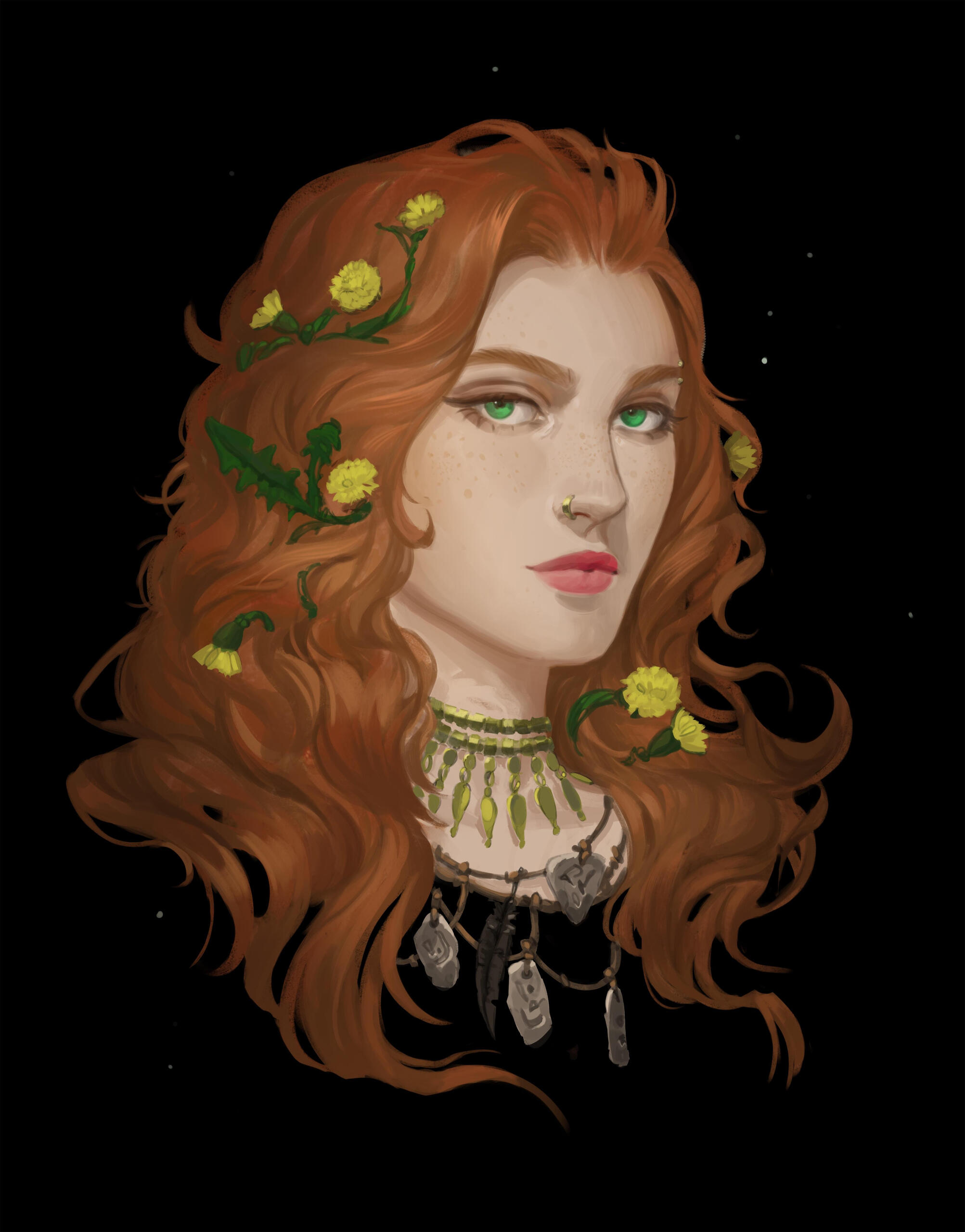 Sun-kissed and freckled with teased copper curls. Meticulously dressed for the task at hand, be it navigating the complexities of noble courts, studious practice of her saging curriculums, or hoisting the Jolly Roger. A wild-eyed nymph, she gives the impression that she’s more at home in the depths of the sea or wilds of the forest. Nothing about her can be tamed from her tempest of ginger curls to the galaxies of freckles, scars, and tattoos across her body. Always beflowered and adorned with enchantments. While the spark of wild magic glistens in her emerald eyes, so does a story of heartaches and bloodlust.